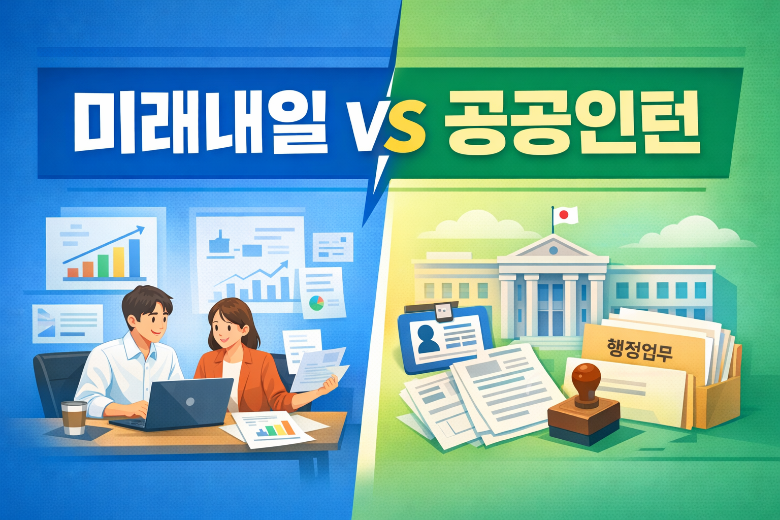 2026년을 기준으로 청년 고용 정책은 단순히 ‘일을 경험해보는 단계’를 넘어, 실제 취업 가능성을 높이는 방향으로 진화하고 있습니다. 이 과정에서 대표적으로 비교되는 일경험 지원 제도가 미래내일 일경험 사업과 정부∙공공기관 청년인턴입니다. 두 제도는 모두 청년을 대상으로 하지만 목적, 구조, 활용 전략에서 분명한 차이가 존재합니다.